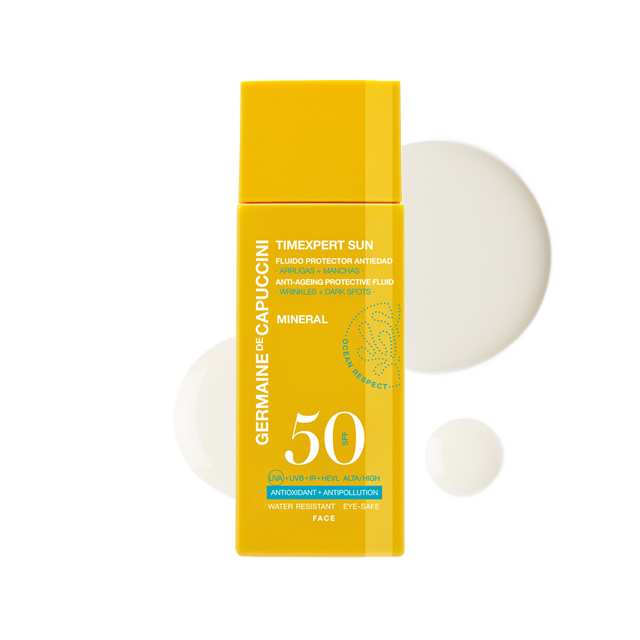 Легкая эмульсия SPF50 с формулой на основе минеральных фильтров. Обеспечивает лицу комплексную защиту от фотостарения и одновременно интенсивно ухаживает: защищает кожу от вредного воздействия солнца и широкого спектра излучений UVA – UVB – IR – HEVL, препятствует обезвоживанию, образованию морщин и пигментных пятен, выравнивает тон и оказывает антиоксидантное действие. Минеральные фильтры – оксид цинка и оксид титана – не впитываются, а остаются на поверхности кожи, мгновенно образуя барьер, который отражает и рассеивает УФ-излучение. Обладает ультра-легкой водостойкой текстурой. Идеально подходит для всех типов кожи, включая чувствительную.