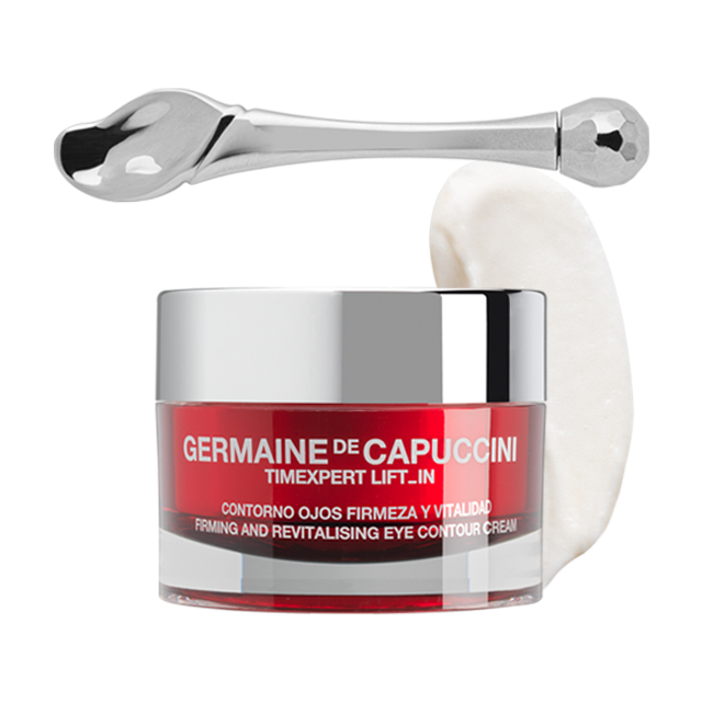 Лифтинговый уход 360º для области вокруг глаз. Помогает бороться с дряблостью кожи и опущением век, уменьшает морщины, темные круги и отеки под глазами, улучшает цвет кожи и мгновенно дарит взгляду отдохнувший вид. Эффект достигается за счет активного состава с запатентованной молекулой HLG, молекулярной 3D-сетью из маниоки, красными макроводорослями гигартина звездчатая, церамидами, светоотражающими пигментами с моментальной визуальной коррекцией несовершенств и комплексом Blefaroplex Pro. Текстура крема создана по технологии Alpha-Gel, которая усиливает проникновение активов в глубокие слои кожных тканей, защищает от потери влаги и обеспечивает моментальный эффект «второй кожи». В комплект входит двусторонний массажер для удобного нанесения крема и массажа.